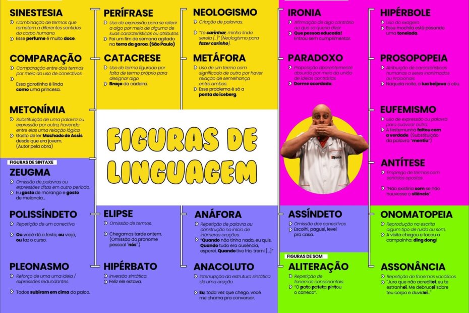 Compilação com os melhores mapas mentais, conceituais, infográficos, diagramas e resumos sobre figuras de palavras.