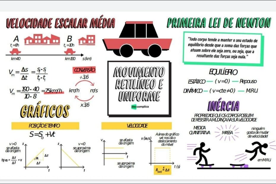 Compilação com os melhores mapas mentais, conceituais, infográficos, diagramas e resumos sobre Primeira lei de Newton.