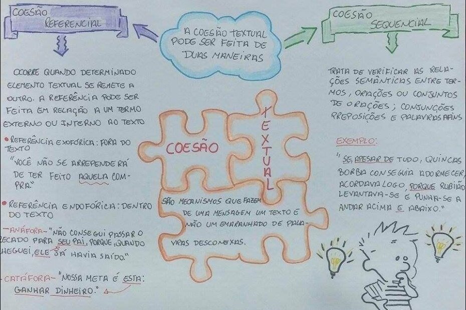 Compilação com os melhores mapas mentais, conceituais, infográficos, diagramas e resumos sobre coesão.