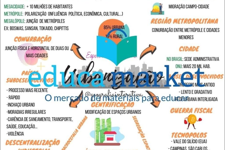 Compilação com os melhores mapas mentais, conceituais, infográficos, diagramas e resumos sobre gentrificação.
