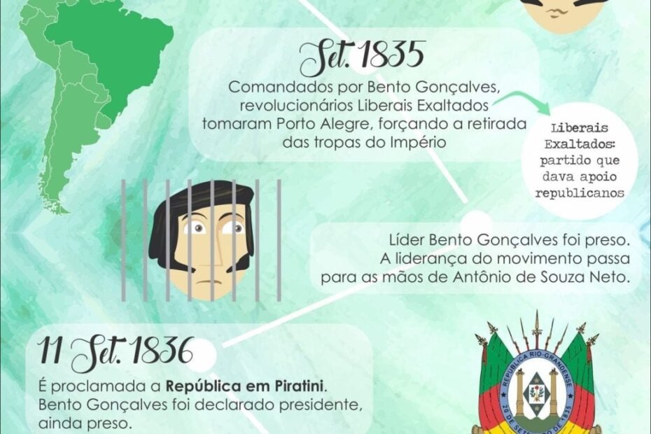 Compilação com os melhores mapas mentais, conceituais, infográficos, diagramas e resumos sobre Revolução Farroupilha.
