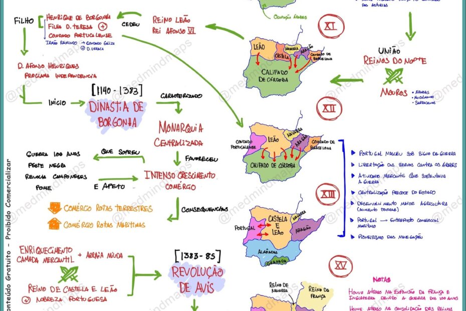 Compilação com os melhores mapas mentais, conceituais, infográficos, diagramas e resumos sobre Formação de Portugal.