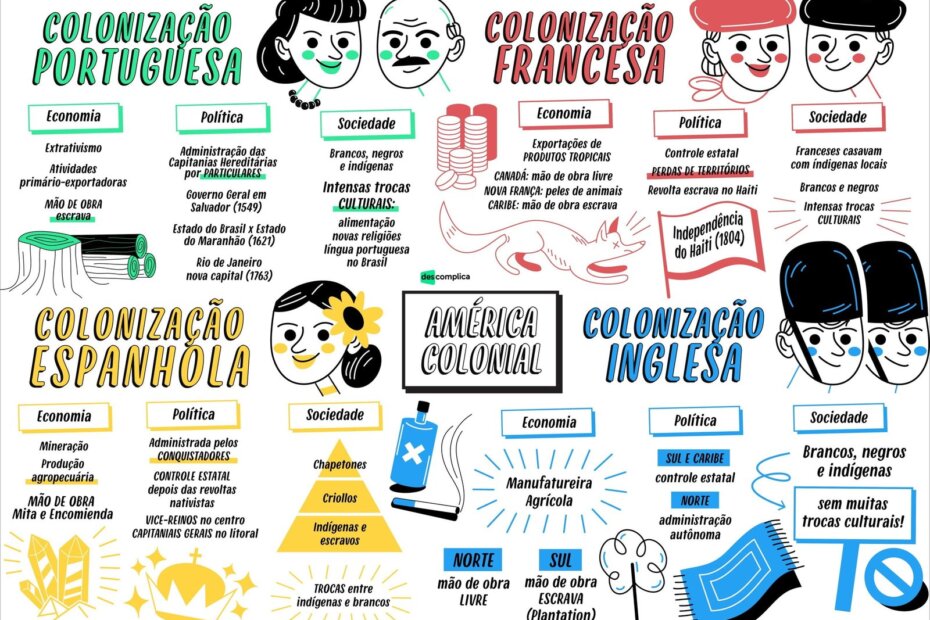 Compilação com os melhores mapas mentais, conceituais, infográficos, diagramas e resumos sobre colonização francesa.