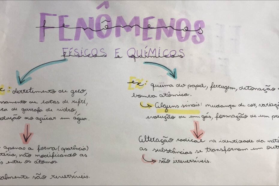 Compilação com os melhores mapas mentais, conceituais, infográficos, diagramas e resumos sobre fenômenos físicos e químicos.