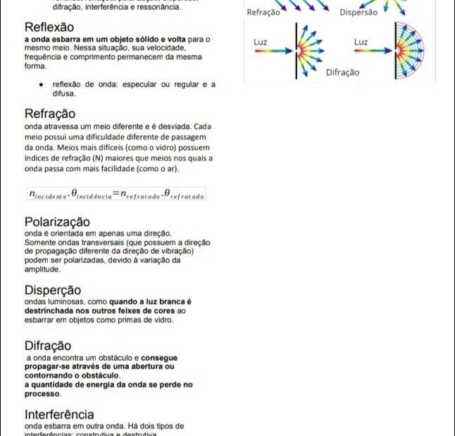 Compilação com os melhores mapas mentais, conceituais, infográficos, diagramas e resumos sobre fenômenos ondulatórios.
