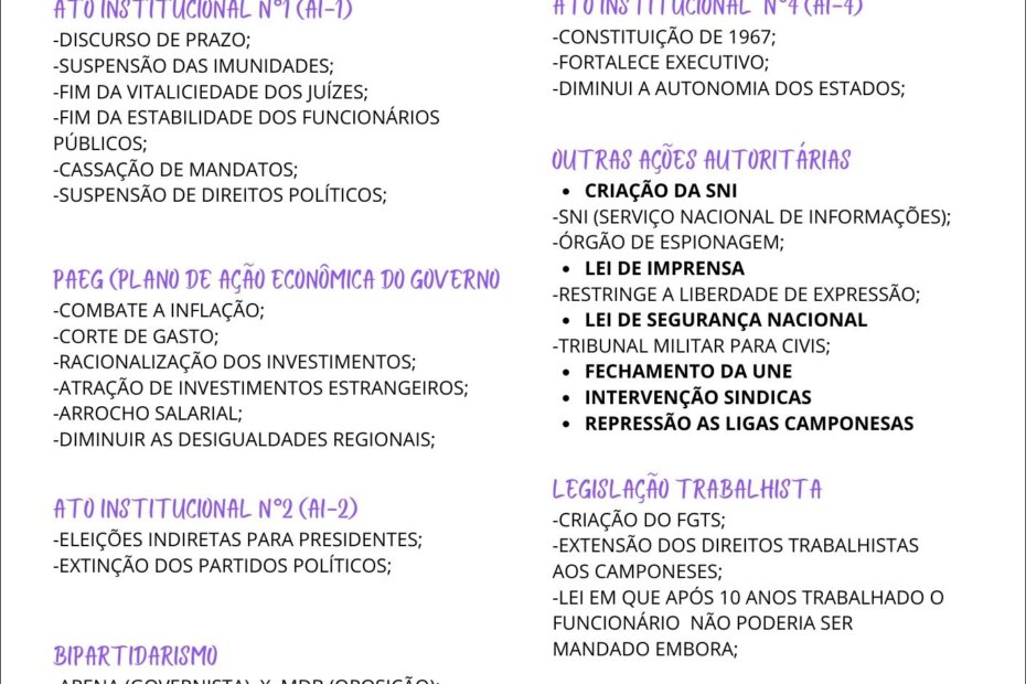 Compilação com os melhores mapas mentais, conceituais, infográficos, diagramas e resumos sobre Governo Castelo Branco.