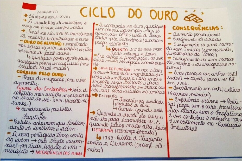 Compilação com os melhores mapas mentais, conceituais, infográficos, diagramas e resumos sobre Ciclo do ouro no Brasil.
