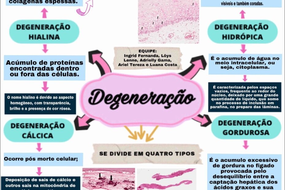 Compilação com os melhores mapas mentais, conceituais, infográficos, diagramas e resumos sobre degeneração celular.