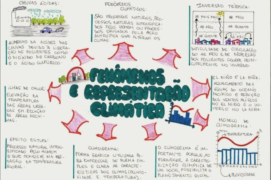Compilação com os melhores mapas mentais, conceituais, infográficos, diagramas e resumos sobre El Niño e La Niña.