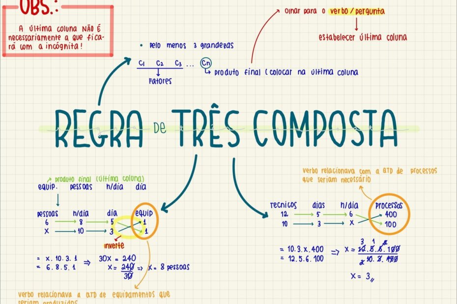 Compilação com os melhores mapas mentais, conceituais, infográficos, diagramas e resumos sobre Regra de três composta.