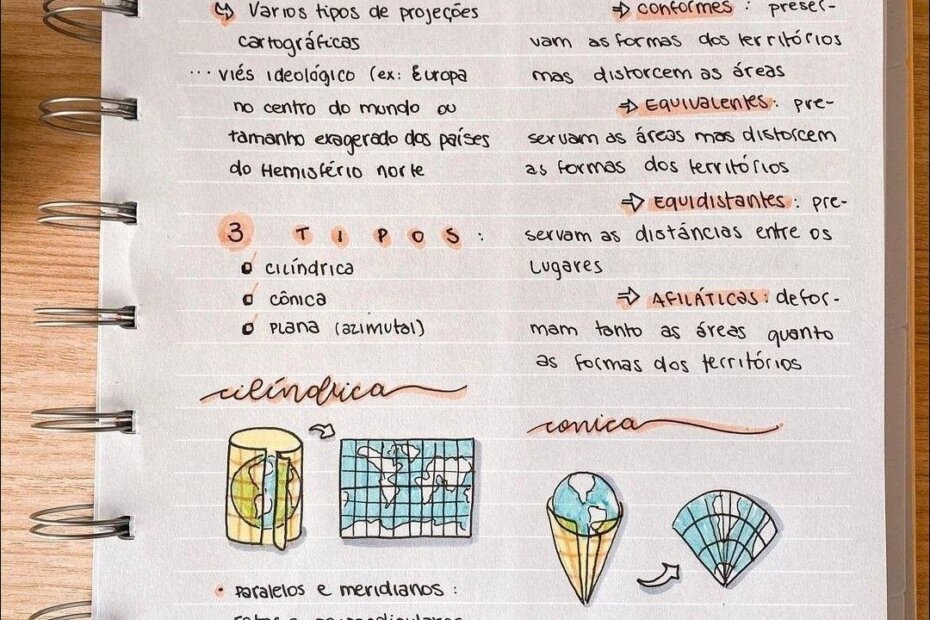 Compilação com os melhores mapas mentais, conceituais, infográficos, diagramas e resumos sobre Projeções cartográficas.