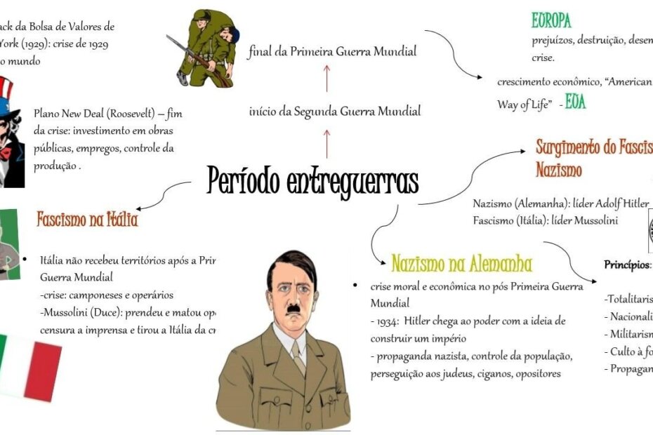Compilação com os melhores mapas mentais, conceituais, infográficos, diagramas e resumos sobre entre guerras.