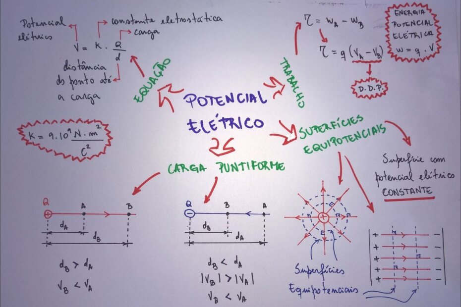 Compilação com os melhores mapas mentais, conceituais, infográficos, diagramas e resumos sobre potencial elétrico.