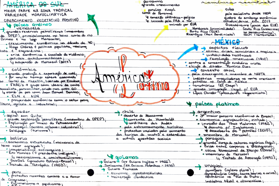 Compilação com os melhores mapas mentais, conceituais, infográficos, diagramas e resumos sobre América Latina.