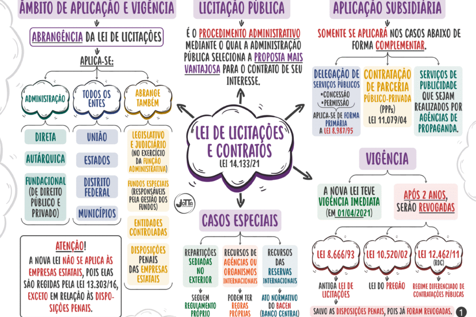 Compilação com os melhores mapas mentais, conceituais, infográficos, diagramas e resumos sobre Lei nº 14.133.
