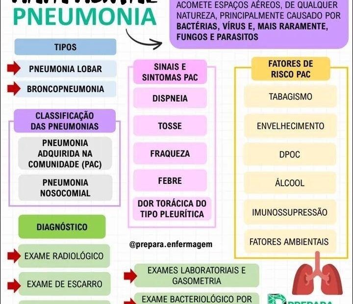 Compilação com os melhores mapas mentais, conceituais, infográficos, diagramas e resumos sobre pneumonia.