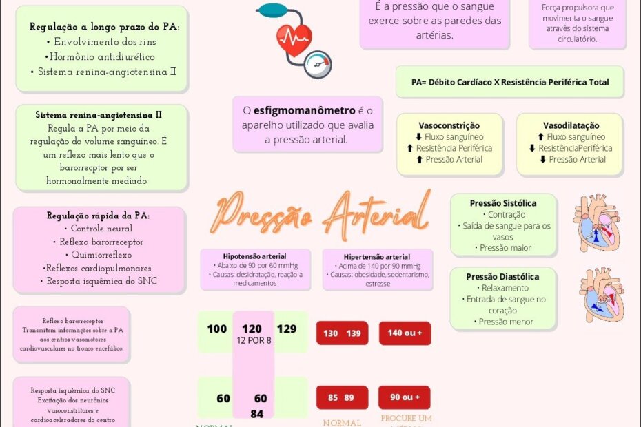 Compilação com os melhores mapas mentais, conceituais, infográficos, diagramas e resumos sobre pressão arterial.