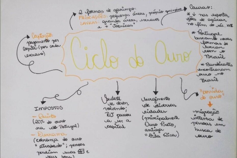 Compilação com os melhores mapas mentais, conceituais, infográficos, diagramas e resumos sobre ciclo do ouro.