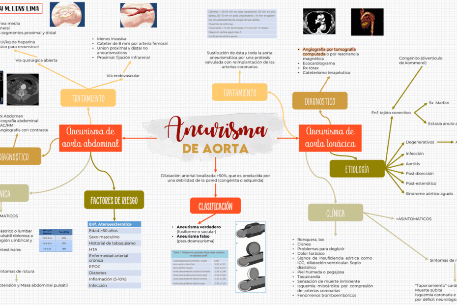 Compilação com os melhores mapas mentais, conceituais, infográficos, diagramas e resumos sobre aneurisma.