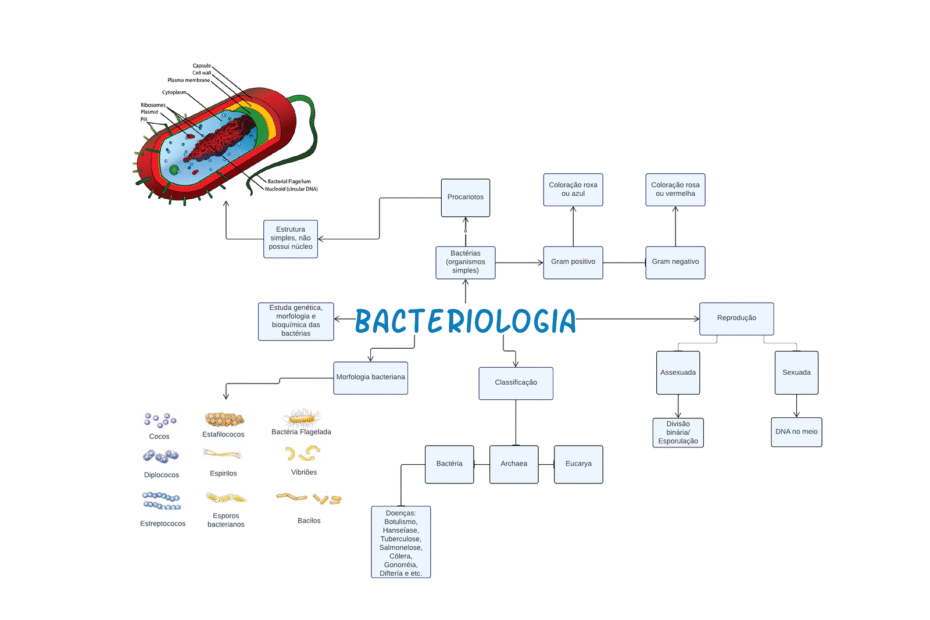 Compilação com os melhores mapas mentais, conceituais, infográficos, diagramas e resumos sobre bacteriologia.