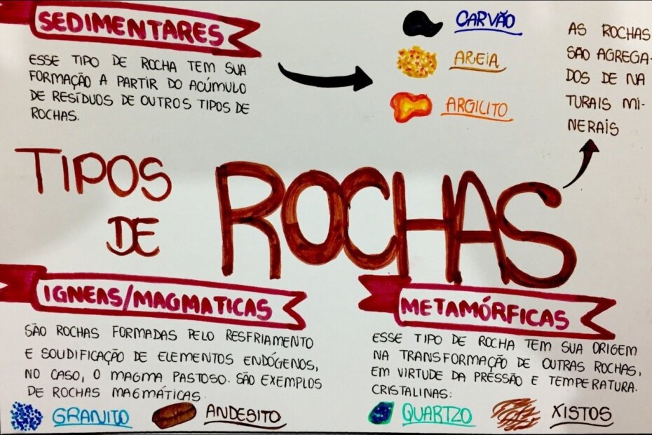 Compilação com os melhores mapas mentais, conceituais, infográficos, diagramas e resumos sobre rochas.