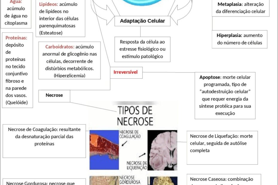 Compilação com os melhores mapas mentais, conceituais, infográficos, diagramas e resumos sobre adaptação celular.
