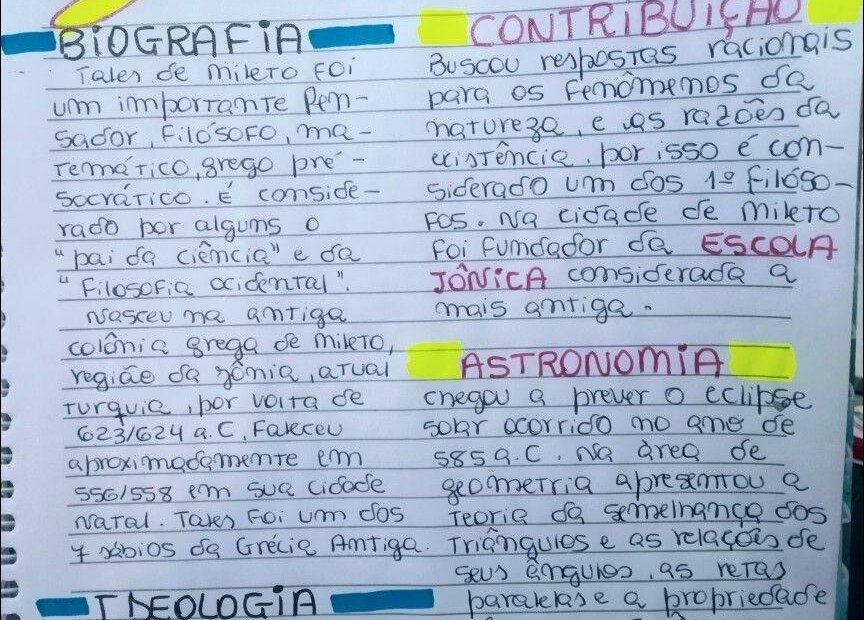 Compilação com os melhores mapas mentais, conceituais, infográficos, diagramas e resumos sobre Tales de Mileto.