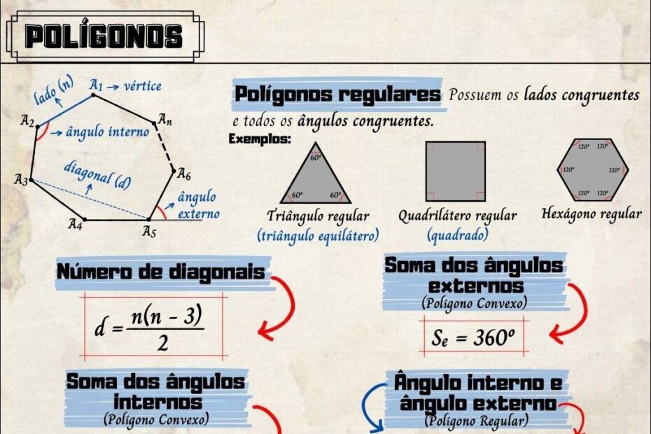 Compilação com os melhores mapas mentais, conceituais, infográficos, diagramas e resumos sobre polígonos.