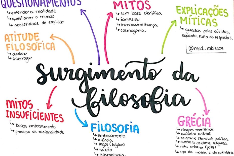 Compilação com os melhores mapas mentais, conceituais, infográficos, diagramas e resumos sobre surgimento da filosofia.
