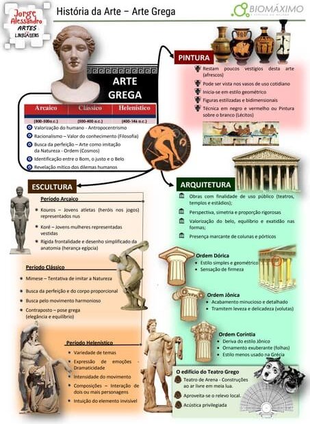 Compilação com os melhores mapas mentais, conceituais, infográficos, diagramas e resumos sobre arte grega.