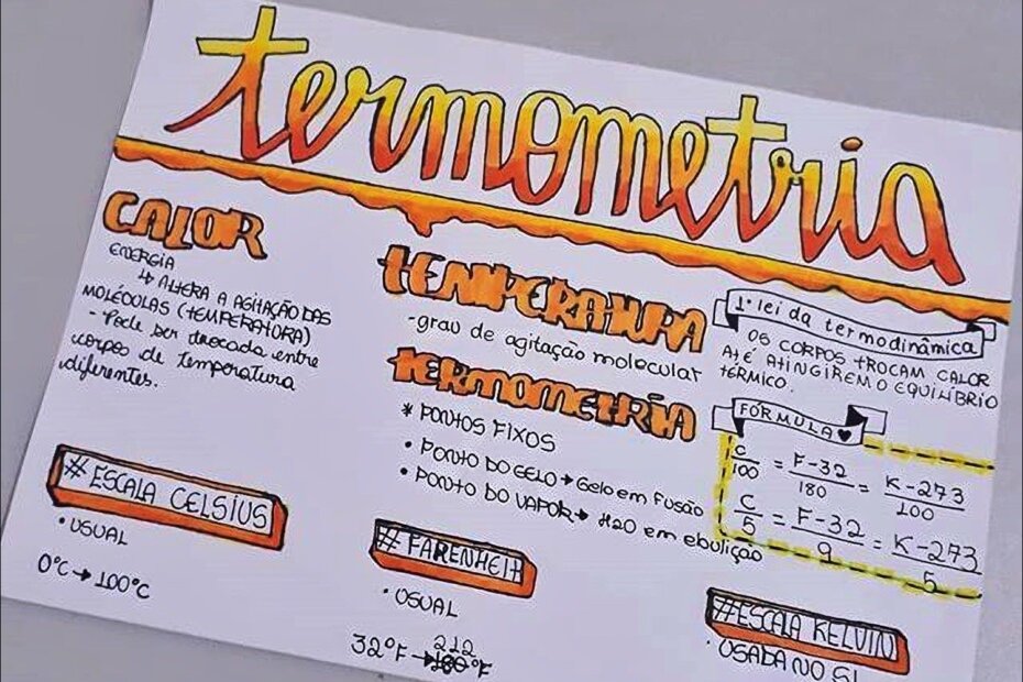 Compilação com os melhores mapas mentais, conceituais, infográficos, diagramas e resumos sobre termometria.
