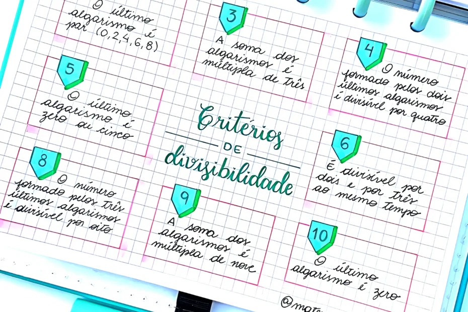 Compilação com os melhores mapas mentais, conceituais, infográficos, diagramas e resumos sobre Critérios de divisibilidade.