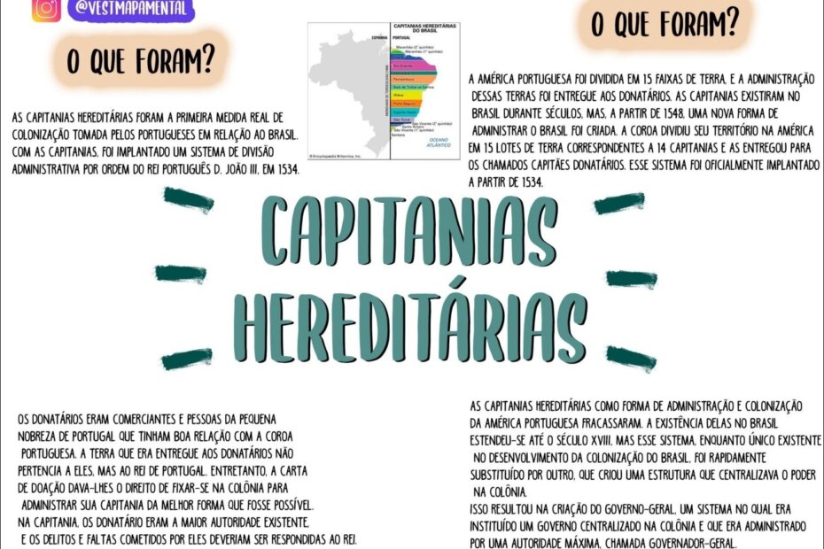 Compilação com os melhores mapas mentais, conceituais, infográficos, diagramas e resumos sobre capitanias hereditárias.