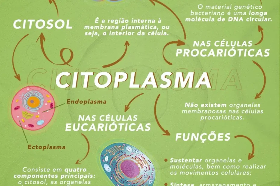 Compilação com os melhores mapas mentais, conceituais, infográficos, diagramas e resumos sobre citoplasma.
