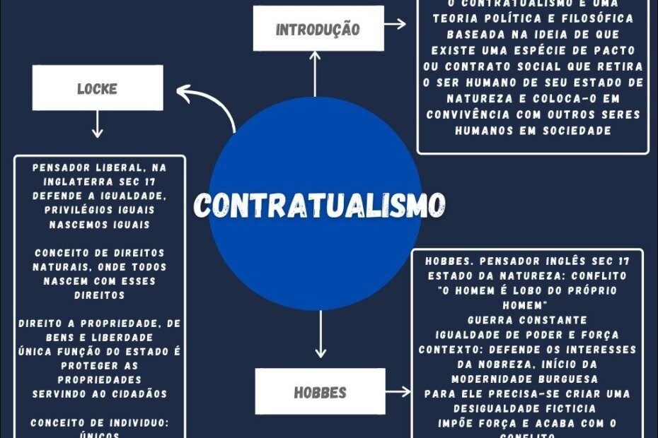 Compilação com os melhores mapas mentais, conceituais, infográficos, diagramas e resumos sobre contratualismo.