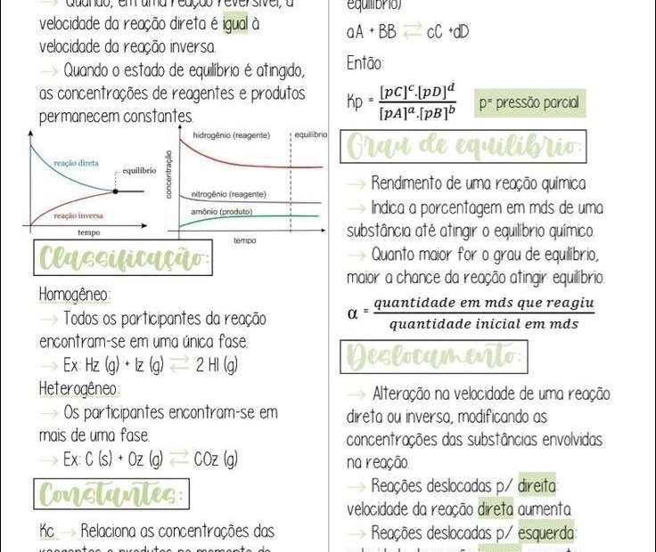 Compilação com os melhores mapas mentais, conceituais, infográficos, diagramas e resumos sobre equilíbrio químico.