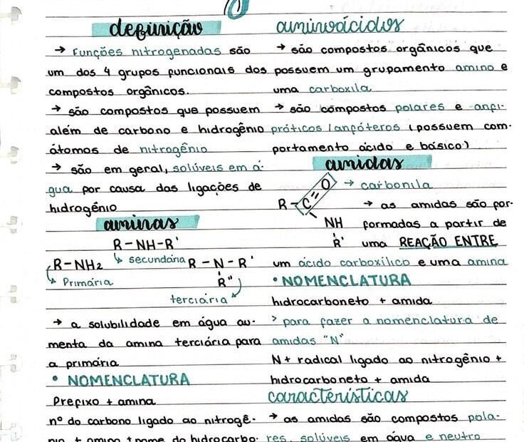 Compilação com os melhores mapas mentais, conceituais, infográficos, diagramas e resumos sobre funções nitrogenadas.
