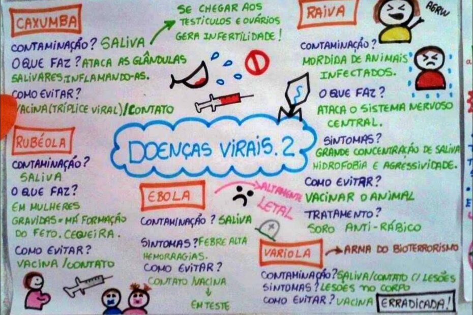 Compilação com os melhores mapas mentais, conceituais, infográficos, diagramas e resumos sobre doenças virais.