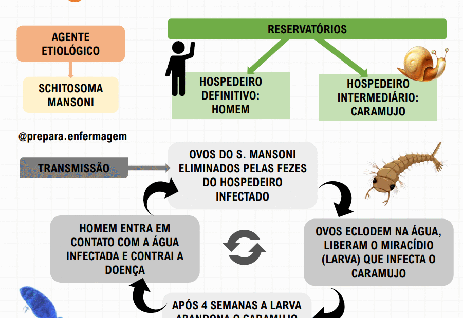 Compilação com os melhores mapas mentais, conceituais, infográficos, diagramas e resumos sobre esquistossomose.
