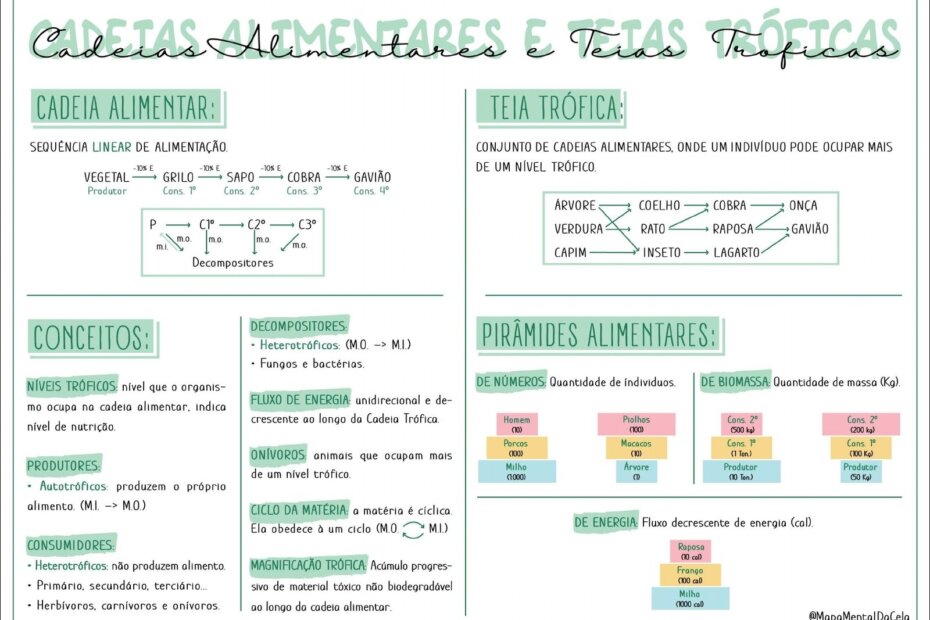 Compilação com os melhores mapas mentais, conceituais, infográficos, diagramas e resumos sobre cadeia alimentar.