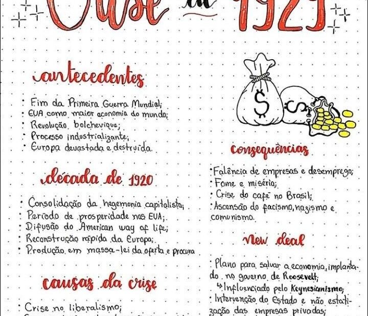 Compilação com os melhores mapas mentais, conceituais, infográficos, diagramas e resumos sobre Crise de 1929.