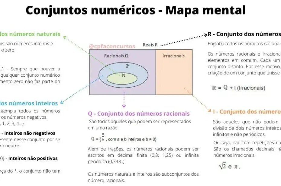 Compilação com os melhores mapas mentais, conceituais, infográficos, diagramas e resumos sobre conjuntos numéricos.
