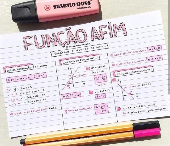 Compilação com os melhores mapas mentais, conceituais, infográficos, diagramas e resumos sobre função afim.