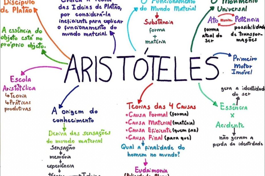 Compilação com os melhores mapas mentais, conceituais, infográficos, diagramas e resumos sobre Aristóteles.