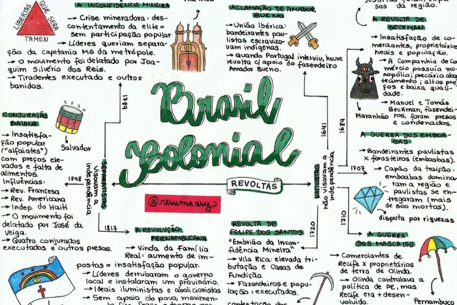 Compilação com os melhores mapas mentais, conceituais, infográficos, diagramas e resumos sobre Brasil colonial.