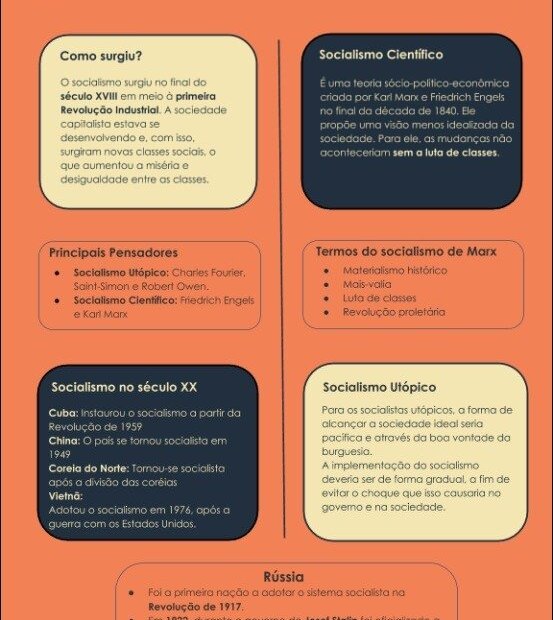 Compilação com os melhores mapas mentais, conceituais, infográficos, diagramas e resumos sobre socialismo.