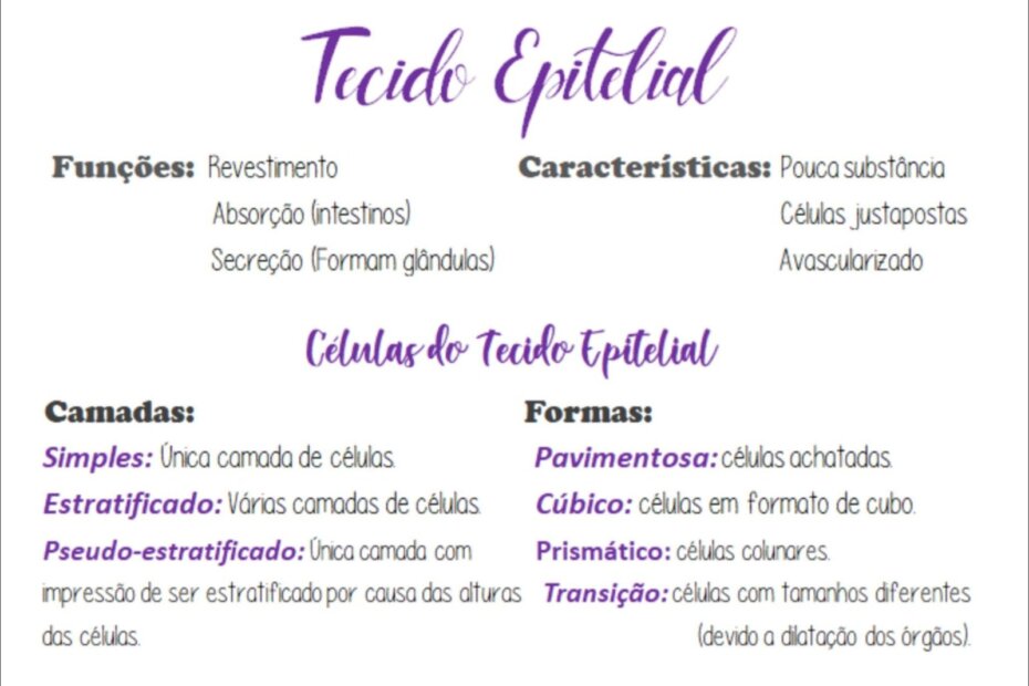 Compilação com os melhores mapas mentais, conceituais, infográficos, diagramas e resumos sobre tecido epitelial.