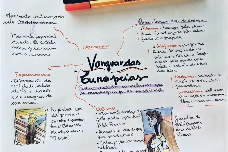 Compilação com os melhores mapas mentais, conceituais, infográficos, diagramas e resumos sobre vanguardas.