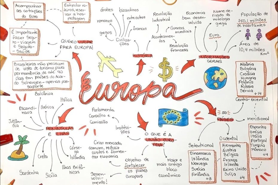 Compilação com os melhores mapas mentais, conceituais, infográficos, diagramas e resumos sobre Europa.