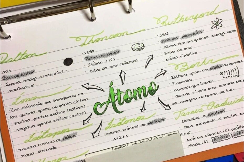 Compilação com os melhores mapas mentais, conceituais, infográficos, diagramas e resumos sobre átomos.